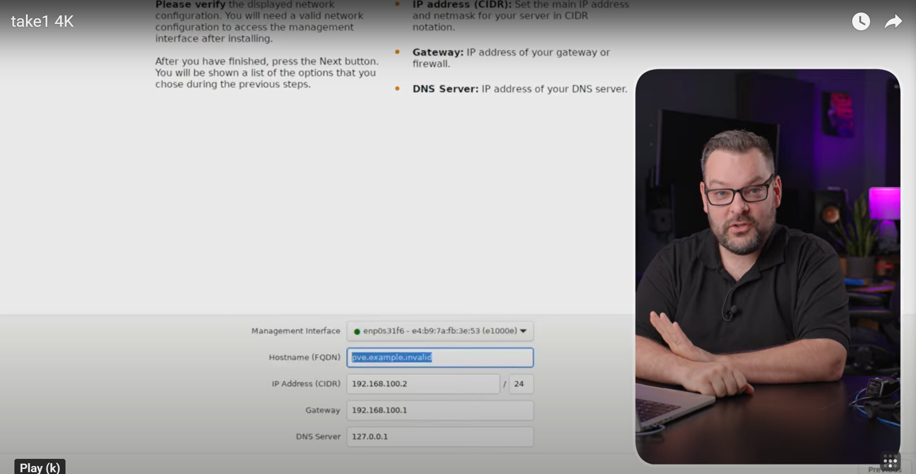At this step, please take note of the “Management interface” you select, since you may be presented with multiple options.