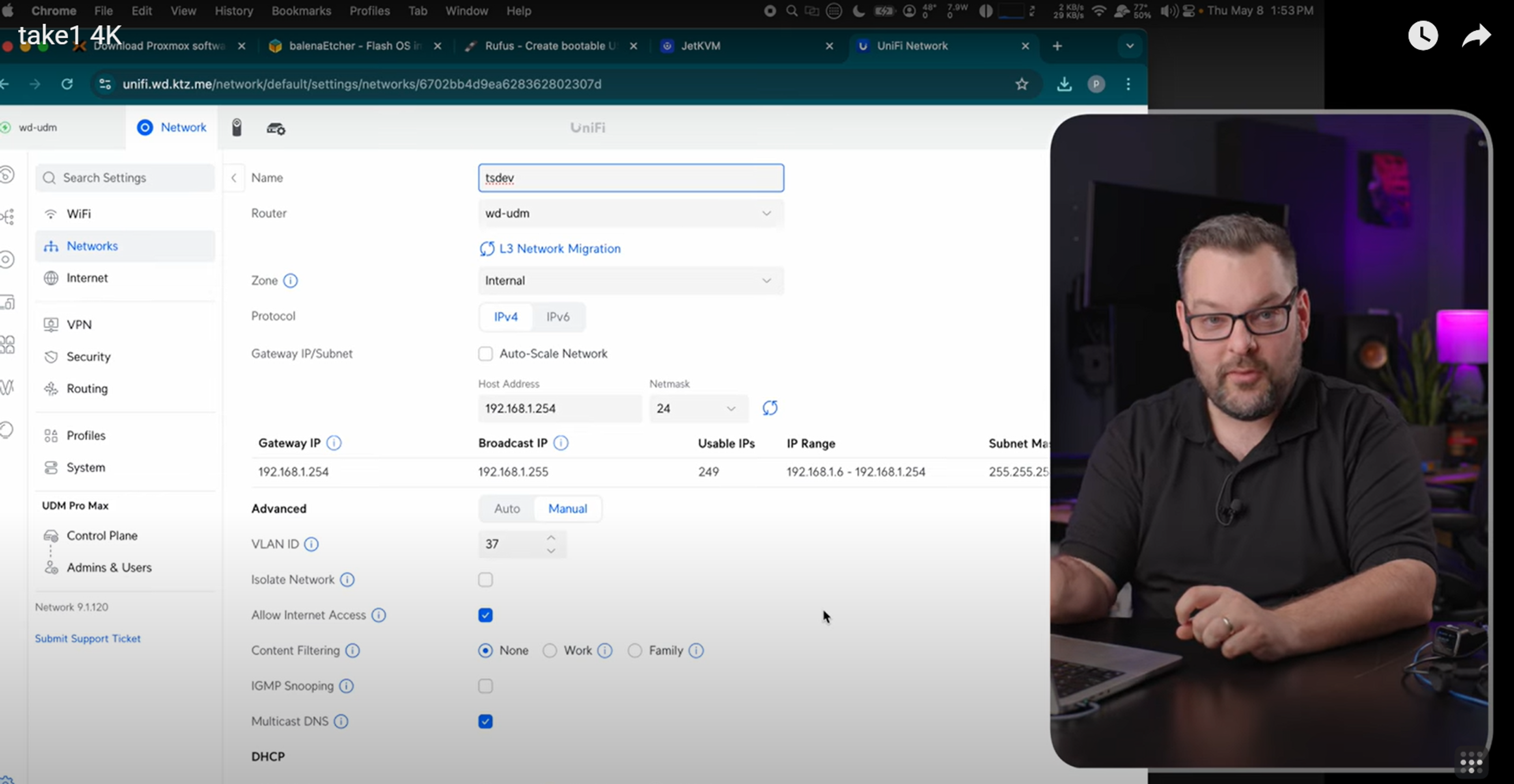 Once the Proxmox ISO has been flashed on your USB, there are a few more steps before you can power on your storage device. First, you’ll need to give it networking capabilities, and for this tutorial's purpose, we’re using a Ubiquiti networking switch. Using Ubiquiti isn’t mandatory, but I recommend it because software-managed switches allow you to carve up the switch into different VLANs for more versatility.
